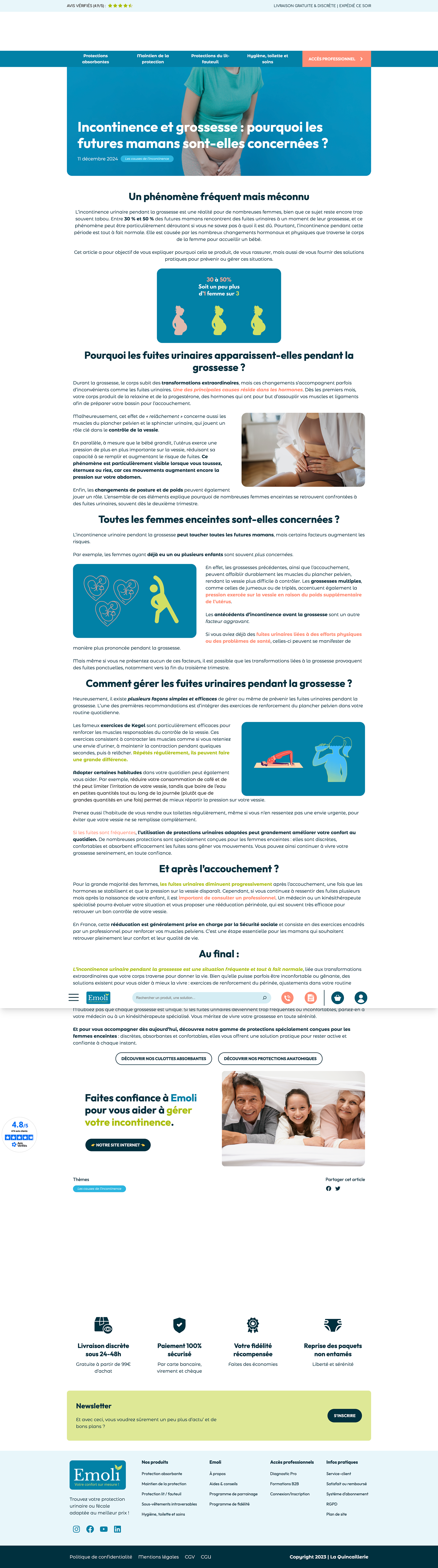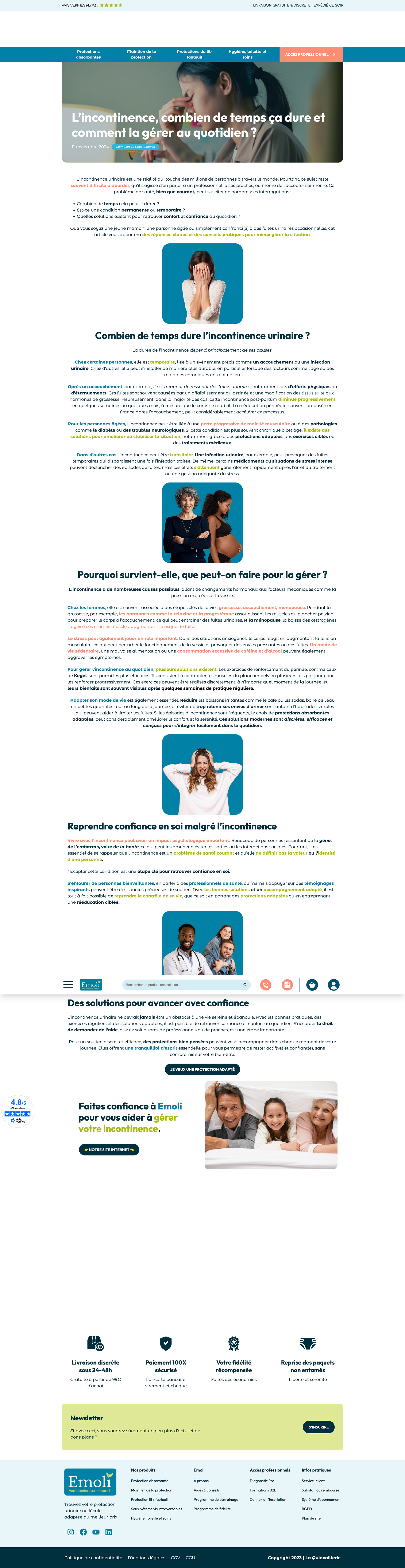 J'ai aussi créer des articles de blogs sur le thème de l'incontinence, avec une optimisation SEO